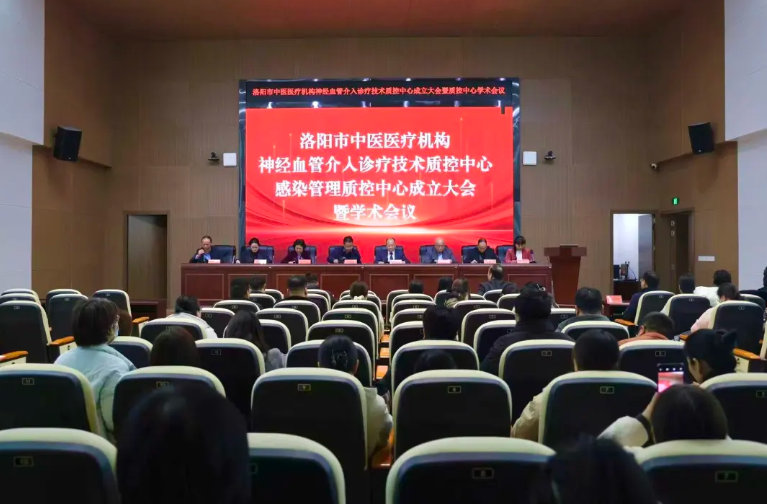 为完善我市中医医疗质量管理控制体系,切实加强医疗机构医疗质量管理,规范医疗服务行为,减少医疗安全风险,提高服务能力,在洛阳市卫健委的大力支持下,11月28日,“洛阳市中医医疗机构神经血管介入诊疗技术质控中心和感染管理质量控制中心成立大会暨学术会议”在北京中医药大学东直门医院洛阳医院(洛阳市中医院)伊滨院区成功举办。本次质控中心的成立,标志着我院脑血管疾病防治进入精准化、标准化新阶段,对提升洛阳中医医疗机构专科服务能力与医疗安全管理水平意义深远。