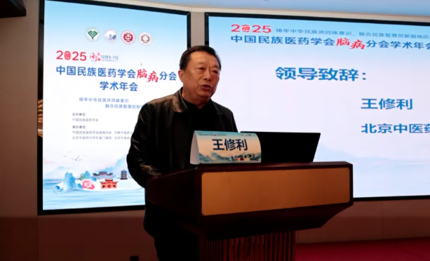 北京中医药大学东直门医院洛阳医院党委书记王修利在开幕式上致辞。王修利书记表示,本次年会的召开对于推动民族医药脑病学的传承创新发展意义重大。期待通过本次大会,进一步凝聚行业共识,强化中西医协同、产学研融合,推动民族医药脑病诊疗标准体系建设,促进科研成果向临床应用加速转化。