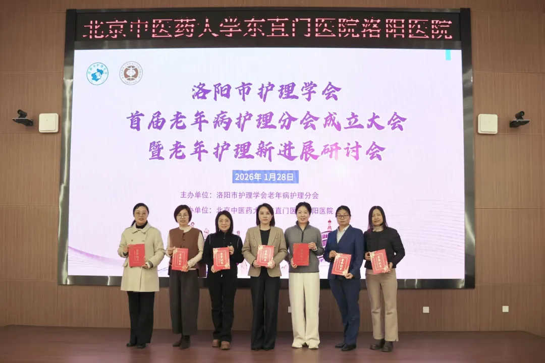 2026年1月28日,洛阳市护理学会首届老年病护理分会成立大会暨老年护理新进展研讨会在北京中医药大学东直门医院洛阳医院(洛阳市中医院)伊滨院区成功召开。本次会议旨在响应国家应对人口老龄化战略部署,搭建老年病护理领域学术交流与协作平台,进一步规范老年护理服务标准、提升专业技术水平。全市各级医疗机构老年病护理骨干150余人参会,共同见证首届委员会诞生。