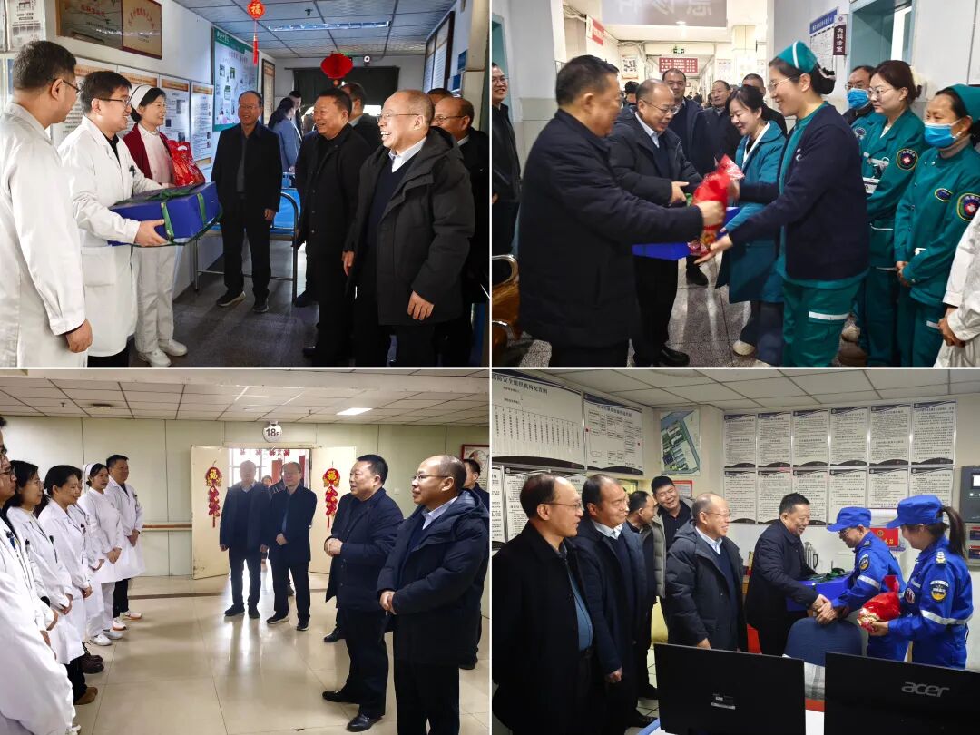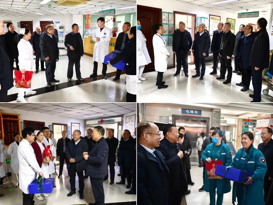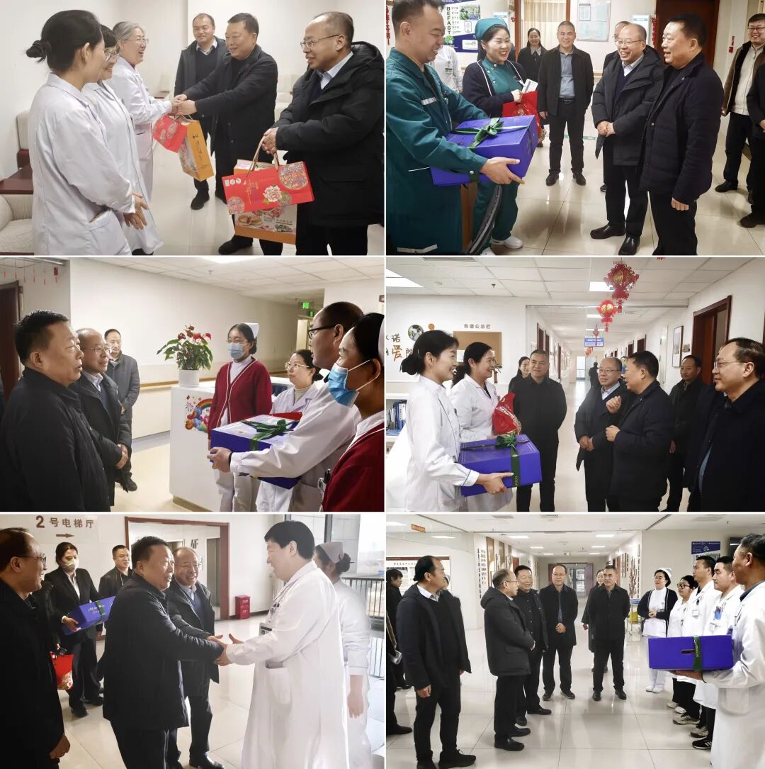 春节前夕,党委书记王修利、院长刘国凯带领医院领导班子、行政职能科室负责人慰问临床一线职工,对各院区不同岗位医护和后勤保障人员的辛勤付出表示感谢,向他们致以诚挚的节日问候,衷心祝愿他们新春愉快、阖家幸福!