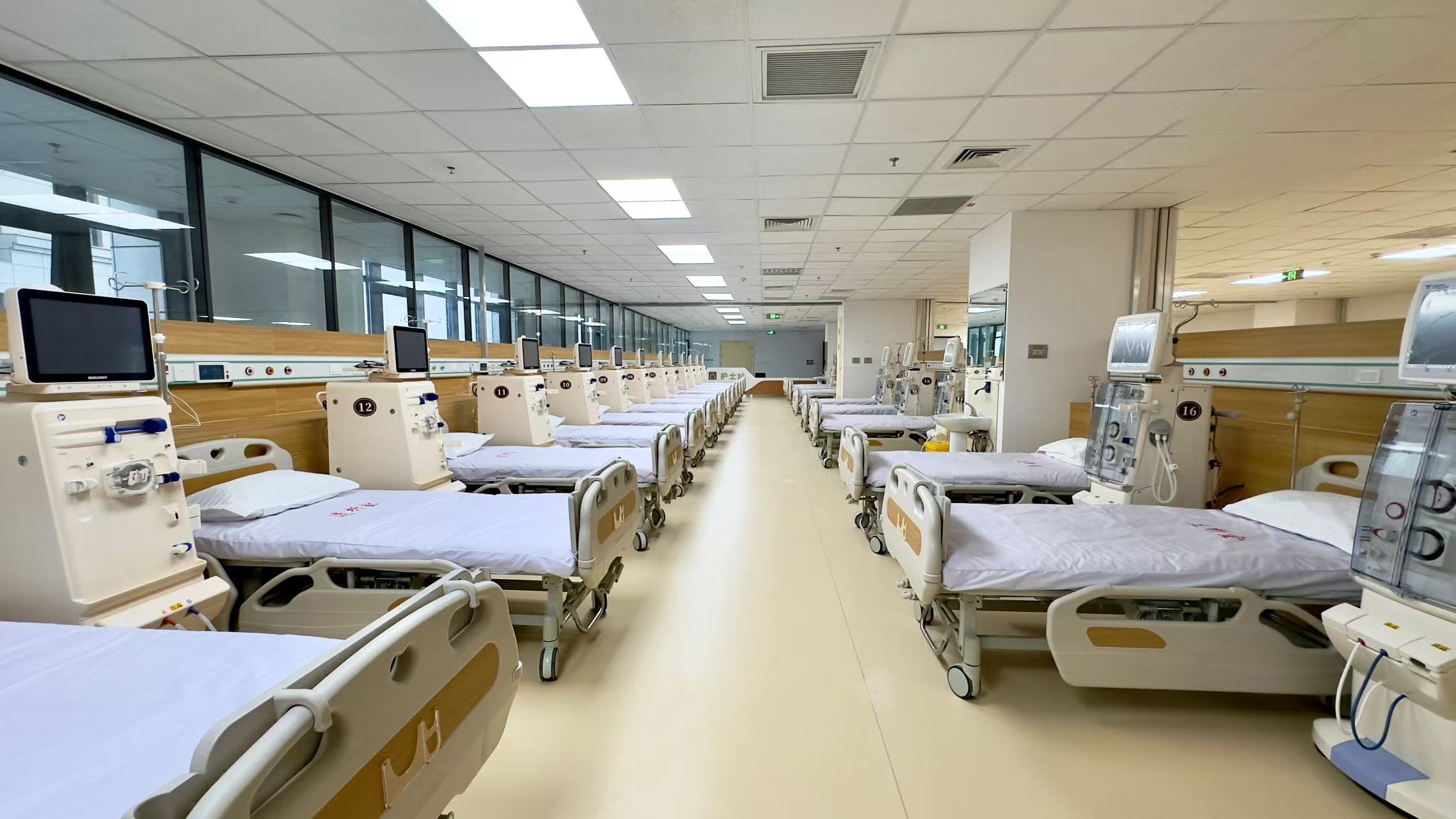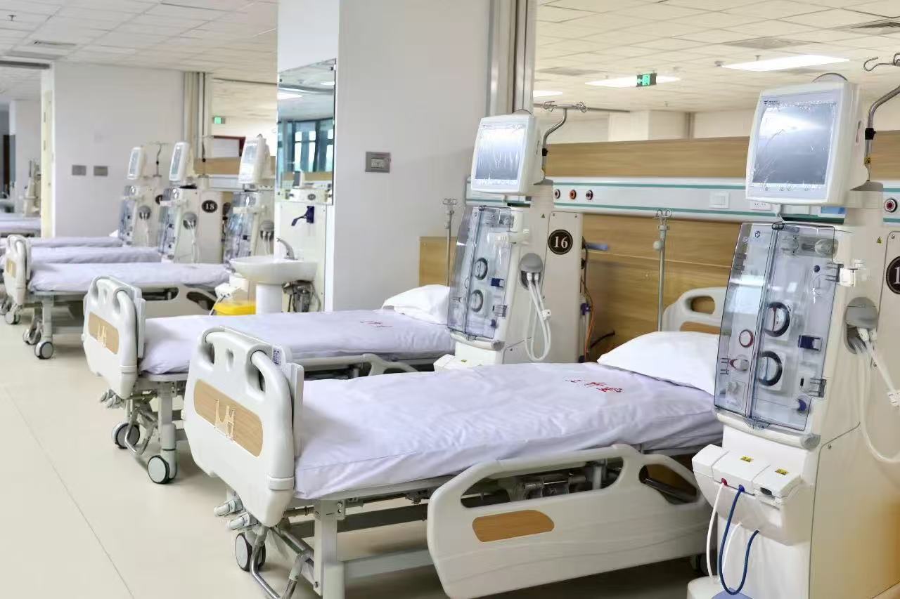 拥有先进血液净化设备,其中血液透析机27台,费森尤斯5008S血滤机8台,CRRT2台。科室环境优美,设备精良,医护团队从事血液透析工作多年,在处理血液净化疾病方面累计了丰富的经验。开展常规血液透析、血液透析滤过、高通量血液透析、无肝素透析治疗;急危重症治疗包括血液灌流、血浆置换、连续肾脏替代治疗(CRRT)、胆红素吸附等。在河南省较早开展彩超及DSA引导下球囊扩张术(PTA)解决动静脉内瘘狭窄/闭塞,人工动静脉吻合成形术,长期/临时导管置入术等通路手术,经验丰富。